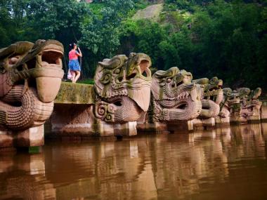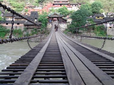 泸定桥又称铁索桥,位于四川省泸定县大渡河上,相传康熙帝统一中国后,为加强川藏地区的文化经济交流而御批修建此桥,并在桥...