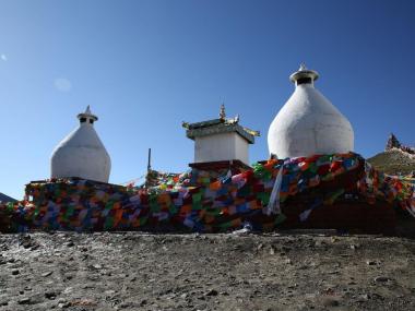 色达天葬台建造在地势相对平坦的半山缓坡上,一座小小的白塔旁,用铁栏半围出一块篮球场一样大的平地,那便是进行天葬的地方...