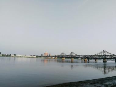 丹东鸭绿江断桥,断桥原为鸭绿江上第一座桥,始建于1909年,长944.2米,宽11米,十二孔,从中方数第四孔为开闭梁...