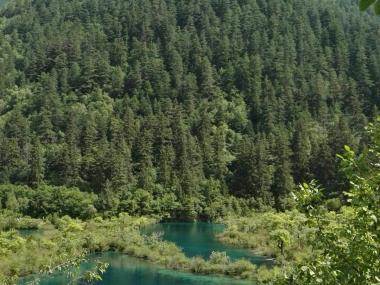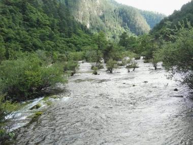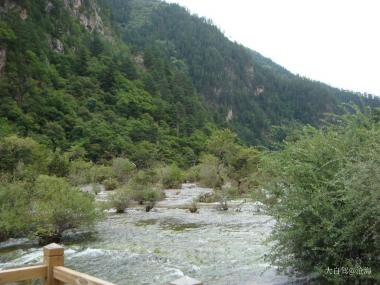 盆景滩是进入九寨沟的第一个滩流景观,过荷叶寨继续前行,便来到一片钙化滩流。浅滩上长满了野草,以及白杨、杜鹃、松、柏、...
