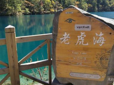 老虎海在树正瀑布旁,能听到如雷般的水声,在深秋季节,岸边的树林已经变黄、变红,在清澈湖水中的倒影斑驳陆离,就和老虎皮...