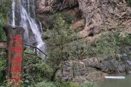 到达谷底后观看150米宽的华夏第一水帘洞,青苔、珠帘、水雾,景观称奇。