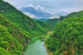 双龙湾景区总面积约50平方公里,因屹立着大龙头、小龙头两座山峰而得名。景区是按照国家5A级景区的标准设计、建造的,景区里面资源类型丰富、全面,既有灵山秀水的自然风光,又有底蕰丰厚的历史文化,自然、人文相得益彰、相映成辉,被人们称为“秦岭罗敷,北国漓江,身边九寨,彩虹世界”。