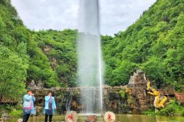 水帘洞宽150米,高15米,堪称华夏第一水帘洞。钻水帘洞,看洞中有洞,帘中有帘,别有一番景致。这个水帘洞是天然形成的,它过去是一个溶洞,据说还做过闯王夫人的议事厅呢,经过上百年的流水冲蚀,形成了现在这样的形状。