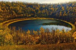 阿尔山天池位于阿尔山市东北74公里的天池岭上,是阿尔山国家地质公园内最具特色和最具代表性的火山遗迹,约形成于距今20万-30万年(中更新世)前,是火山口积水形成的。阿尔山天池是火山喷发后火山口积水形成的火山口湖,因天池水既没有河流注入,也没有河道泄出,形成一种封闭式特殊类型火山口湖玛珥湖。阿尔山天池无论旱季还是湿季,水位始终不变,而且天池的深度也从来没有被测量出来过。