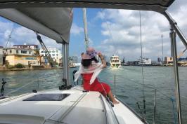 在三亚鸿州码头帆船港,扬帆出海,在蓝天白云下,听最纯粹的海浪声,帆船是集娱乐性、观赏性、休闲性于一体的海上运动项目。船上体验着帆船极速前行的速度,欣赏着蔚蓝海景的同时,内心会无比激动。在海南目前也就这两年才兴起非常时尚,好玩,老少皆宜。