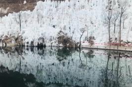 09:00,出发游览生态风景区——沕沕水,典型的喀斯特岩溶泉,常年涌流,四季不竭,水质洁净甘冽,沿绝壁飞落,形成落差93米、45米等多级瀑布;史载南有悬棺、北有龛棺,而今难以寻觅的龛棺,在此可大饱眼福,当属北方一绝;
