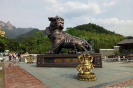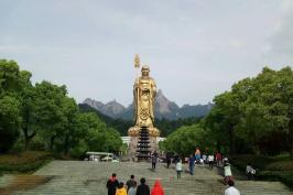 九华山大愿文化园位于九华山风景区北麓的柯村,分为地藏菩萨铜像、内外明堂广场、佛文化展示中心、佛学院、普济院、小西天景区等部分。高99米的地藏王菩萨露天铜像是景区的地标,以狮子峰为背景,每当太阳升起时,从正面看霞光万道,而且在每年的春分和秋分时节还会形成独特的“佛光”现象。
