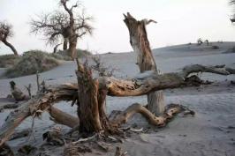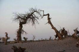 怪树林在额济纳旗达来呼布镇西南28公里处,所谓“怪树林”,是数百年前因自然灾害——极端的干旱而致成片的胡杨枯死,且干燥的环境让胡杨枯而不腐、挺立不倒,才使今人能观赏到形状各异的胡杨造型。
