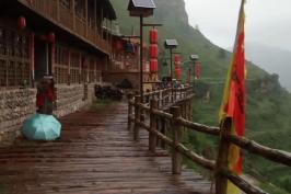 悬空村位于晋西北管涔山深处,浓密葱茏的林海之中,有三个古老神奇的悬空村:王化沟村、五花山村、曹家梁村,均属宁武县涔山乡,三村相距很近分别建在悬崖绝壁间,远望好似空中楼阁,天上人家。村里房屋都建在百米高的悬崖绝壁上,街道是立木支撑、圆木铺架的“栈道”,远处眺望就好像悬在空中的楼阁。