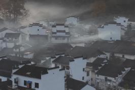 石城位于婺源县西北的大鄣山乡境内,村头有石壁,岩如古城,危耸的城“墙”内外有许多古树名木,其中最让人惊叹的就是这里的百来棵枫树,每棵树高都在35米以上,远远超过村里的高矮屋顶,和巨大且笔直向上的树冠相比,粉墙黛瓦简直就是玩具魔方搭建起的屋子。 每到11月中下旬,这里就是摄影爱好者的天堂,枫树环抱,晨雾悬挂树腰,红枫在晨雾中若隐若现,加上早晨村民的炊烟,在这个小山洼里汇聚,构成了如梦幻般的仙境,枫树也似仙境之圣物。