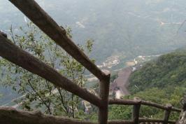 乘云中羌寨索道上山参观西羌神韵艺术墙,后前往情人桥、雌雄碉楼;