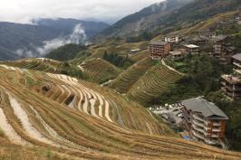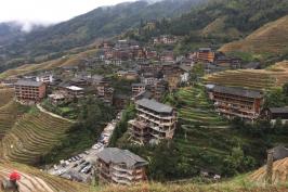 早餐后车队前往龙胜龙脊梯田;龙脊梯田是桂林地区一个规模极为宏大的梯田群,龙脊梯田从山脚盘绕到山顶,小山如螺,大山似塔,层层叠叠,高低错落。其线条行云流水,潇洒柔畅;其规模磅礴壮观,气势恢弘,“春如层层银带,夏滚道道绿波,秋叠座座金塔,冬似群龙戏水”,其壮观被艺术家赞叹为“神妙的韵律,优美的线条”,有梯田世界之冠的美誉。