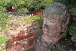 乐山大佛,又名凌云大佛,位于四川省乐山市南岷江东岸凌云寺侧,濒大渡河、青衣江和岷江三江汇流处。大佛为弥勒佛坐像,通高71米,是中国最大的一尊摩崖石刻造像。乐山大佛和凌云山、乌尤山、巨形卧佛等景点组成的乐山大佛景区属于国家5A级旅游景区。