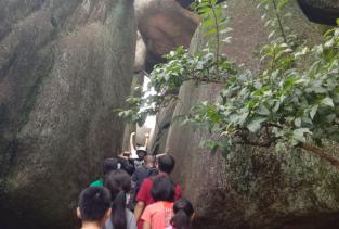 天柱山对安徽本地人有有优惠,所以我们全家就去玩了一次。 景色非常宜人,而且就算爬不上山,也会有缆车,(建议是上山坐缆车,然后步行下山),游客素质都很好,坐在大巴车里有说有笑的。