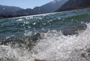 冶勒湖路很好开,有几处要注意下落石,一路上随处可见猪马牛羊,它们一点也不怕人。景区正准备商业开发,还未收费,春节人也不多,而且趁现在去还可以看到最原始的景致,天很蓝,水就像一块无暇的翡翠,非常美,太阳下波光粼粼,风很大,可以看到水面和风、阳光仿佛在演绎一场大型舞台剧。还可以远眺巍峨的雪山!