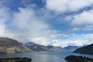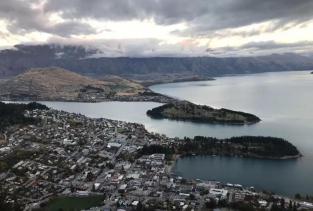 从瓦纳卡湖去皇后镇有两条路可到,一条就是沿河的比较平缓的6号公路,另一条就是翻山越岭的皇冠公路了。我们挑选号称最美的越山路皇冠公路进入皇后镇,结果和中国的大山没得比。 照片是进入皇后镇最后一个山口的照片(远处雪山和眼前的山脚下就是皇后镇了)以及瓦卡蒂普湖的风景,自驾为主,照片嘛将就一下。 这天开始天渐渐放晴了,湖区景色悦人,越发心旷神怡。
