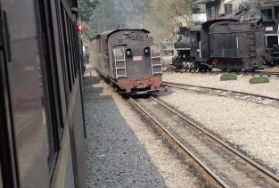 嘉阳小火车游客以及当地老乡可以在此跃进站上火车前往沿途各地。小火车的行车路线以及沿途沿途停靠的车站(共7个车站)。车站上正等待调度室安排工作的工人师傅。发车前,小火车头开去连接车厢。远处开来一趟小火车见此情景一位游客迫不及待地操起卡片机拍起来。
