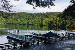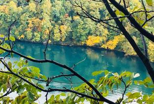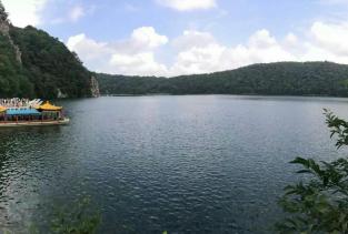 到达三角龙湾进到景区可以选择乘电瓶车到达湖边,也可以选择林间栈道下到湖边,建议走栈道。到湖边后,一定要登山到达通天亭,才能看到三角龙湾的全貌。然后原路返回到湖边,乘船游湖,湖心岛短暂停留,一般会在对岸下船,游览旱龙湾,最后回到三角龙湾的入口停车场。整个景区不是很大,一般的行走,1.5-2个小时的时间足够。我们接下来还去了附近的吊水壶。如果时间安排合理的话,附近还有大龙湾可以游览。