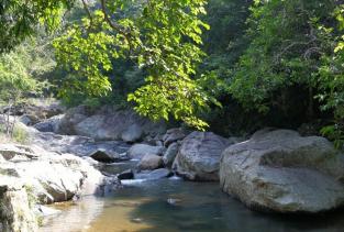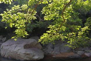 太平山瀑布简直是个世外桃源,山上长满老树古藤,岩石叠峰奇秀,树木荫翳山径幽深,山花烂漫,鸟唱蝉鸣,溪水潺流,潭清见底,游鱼可当数。