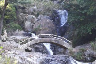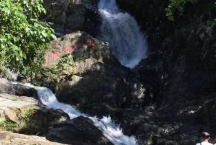 太平飞瀑路过南国夏宫,曾是当前付主席林彪的休养别院,景色怡人。飞瀑上方有凉亭,瀑布蜿蜒而下,击起些许浪花。中间刻有太平飞瀑四个红字下有小桥一座,是不少游客拍照留念的好地方。
