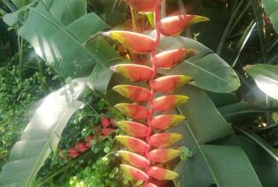 兴隆热带植物园有着最丰富的热带植物品种,很多的种植植物的母本。香蕉,菠萝,木瓜,咖啡豆。最引起好奇的是瓷玫瑰花。硕大的花朵在细细的花茎支撑下孤傲的矗立在草丛中。不需一片绿叶陪衬。