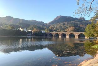去休宁齐云山的时候就住在横江边上的民宿,在江边随便走走就遇到了民宿照片里的登封桥,桥是典型的徽派建筑。远远看上去古朴安然,距离不远有一个类似于水坝的小桥和水面同高,人走在上面仿佛水上漂。