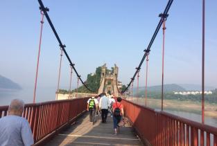 石宝寨在重庆的一个孤岛上,这里还住着一些居民,不过人非常少,他们唯一的收入就是旅游了,因为岛屿很小,旅游山峰就占据了大部分,基本不能农作,不过地方虽然很小,却也是非常值得一观。石宝寨在长江边,从一条非常长的铁索就能过去,铁索以红色为主,让人想起了很多韩国,那里大桥都是这中艳丽的风格的。走在桥上会有一阵阵的风吹过,非常舒服。