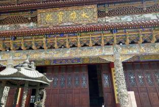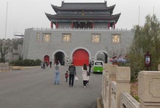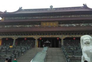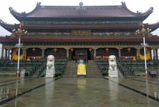 南海禅寺山门牌楼长50米,高31米。在山门内长500米,宽20米的甬道上,自北向南依次按12因缘、12生肖、12菩萨,建筑了12座花岗岩牌坊,风格独特,巍巍壮观。东北部白圣长老舍利塔,融我国古代建筑艺术与东南亚现代建筑艺术风格为一体,既高大雄伟,又典雅别致。寺院门前为三殿门,殿内两旁供奉两尊金刚为“哼哈”二将,寺内南部是以大雄宝殿居中心的殿堂建筑区。大雄宝殿内供有一尊高17米,重72吨铜雕鎏金坐像,殿前为1200平方米的广场。大雄宝殿台基上雕刻的花岗岩质500罗汉,集全国20多处罗汉堂之精华,聚优秀雕刻工