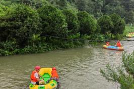 在漂流河道的中部,有一段约一公里的连续险滩区,几十个大落差接连出现,俯冲而下的快感会让带你逃离地心引力。