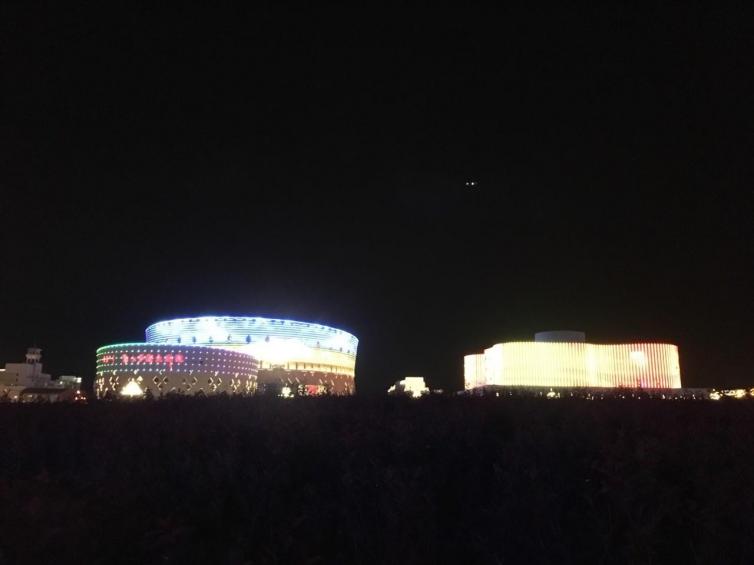 康巴什旅游区,其实是包括几个区域的,其中的话就是中心点,是在市政府广场那里,也就是成吉思汗广场,一路延伸到乌兰木伦湖,最远的地方可以去到鄂尔多斯体育中心,包括博物馆艺术中心歌剧院图书馆,这里要看的第一个就是建筑,造型都是非常国际化的,晚上看的话,还会开着灯,第二个要看的就是这里没有人,鬼城可是名不虚传的
