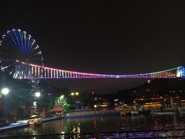 隐贤山庄景色不错玻璃桥吓人、里面的餐饮很便宜,不用带啥东西进去吃里面啥都有,自助餐才39,最后的币都拿去夹娃娃但是都没夹到。夜景还是挺美的,但是带小宝宝去就有点累地方大走得太好累