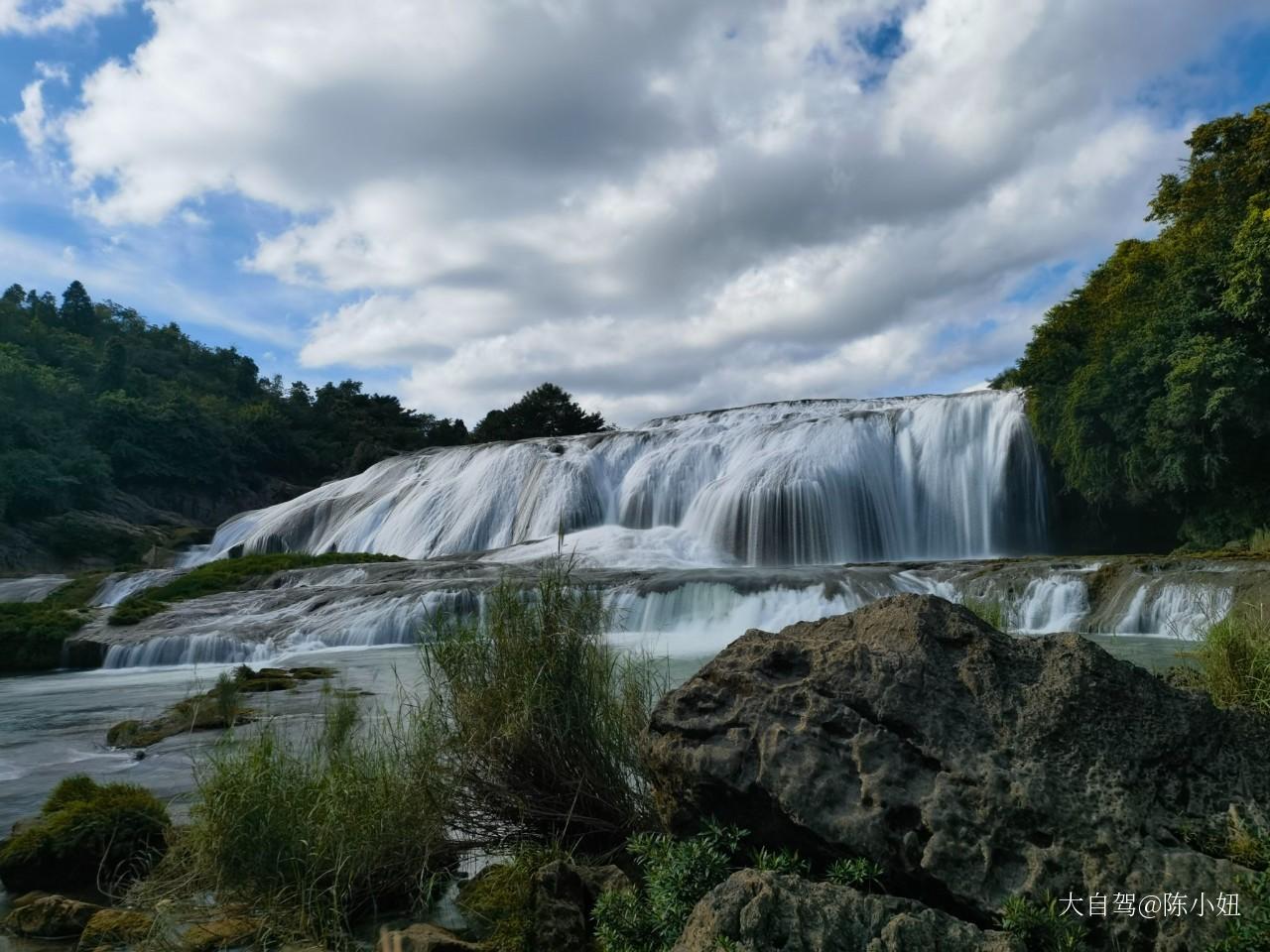 我建议先去黄果树瀑布,然后去陡坡塘瀑布,最后去天星桥景区。这样安排呢,是为了躲开旅游团,游览体验更佳。据说黄果树瀑布水帘洞人多的时候,要排很久的队,限制了人流量的。一般旅行团会把黄果树瀑布放最后面。 )“翻空涌雪,而不见其下截,盖为对崖所隔也。”陡坡塘瀑布,每当洪水到来之前,瀑布都要发出“轰隆。轰隆”的吼声,因此又叫“吼瀑”。瀑顶宽105米,高21米,是黄果树瀑布群中瀑顶最宽的瀑布。如果说黄果树瀑布是壮美的,而陡坡塘瀑布则是甜美的,它似“新娘面纱”,水沿着和缓的瀑面,在一鳞鳞的钙华滩面上均匀地撒开,在阳光下泛着银光,如一层薄薄的、半透明的面纱;它更似女子,清秀妩媚、空若幽兰、典则俊雅,缓缓地如轻纱薄幔般地流下,浸润着遐思般的浪漫,带着风雅的韵味。