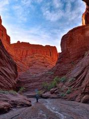 行走在库车大峡谷,红色刺眼的岩如同在火焰一般,你就是虽火焰跳跃的舞者。更美的是,某段裂谷,一片蓝天,置身处地的感受到了什么才是一半是海水,一半是火焰。当然,走完整个大峡谷是需要勇气的,水姚带够,万一没水了,谷中有几处天然泉眼,这也算是造物主的造化吧。