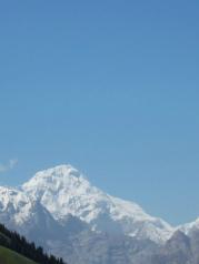 托木尔峰为天山第一峰,被列为国家综合自然保护区。巍巍托木尔峰终年白雪皑皑、云缠雾绕、景象壮丽,奇特的自然景观犹如神工鬼斧