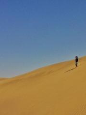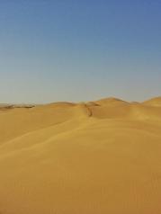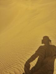 有些人认为穿越沙漠意味着征服,而我觉得穿越沙漠只是为了亲近沙漠。进入塔克拉玛干,我们的视觉、呼吸、听觉、甚至我们的味觉都是塔克拉玛干的,当身处沙漠腹地,当你全身的感官都与沙漠融为一体时,你会幻想从空中看到自己,你就是沙漠里的一粒沙,一花一世界,一沙一浮生,睁开眼,你看见沙漠,闭眼上,你听见大海。