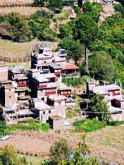 丹巴甲居藏族,当车绕着狭窄的水泥道进入有着一路相伴的大金川河的隆隆声响时,随着海拔的逐渐提高,我们的兴趣也在慢慢被吊起。视线里开始出现的画面斑斓起来。远远看去,充满灵气的山谷中,翡翠般的青草绿树之中,是那沉甸甸的田地和隐在密林深处的寨房,伴着时有时无的潺潺溪流,一幅富有动感的绝妙山寨画卷随之展示在你的眼前。 阳光下高坡地和山腰上分布着上百栋红、白、黑三色相间的石砌小楼,炊烟萦绕在白塔和五色经幡之间,仿佛是令人神往的桃花源。这是人间还是天堂?我们的眼睛几乎在怀疑了,如此的画面岂是人间所能见到? 不知是来得早还是藏寨的人们还没开始营生,还在其他人惊叹这地方的巧夺天工和完美之际,而我竟然悄悄的一人