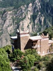 四川甘孜州丹巴县的甲居藏寨是独特的藏式楼房建筑,一户人家住一幢寨楼。一般寨楼坐北朝南,有的三、五成群相依相偎,有的远离群楼,孑然独立。它们从金川河谷层层向上攀缘,一直延伸到群峰脚下。