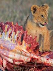 今天的马赛马拉草原直播,一只受伤的母狮终于捕到了猎物,小狮子们虽然还没断奶,但也可以进食肉类了。 吃饱了就是玩耍时间,这也是为了今后自己捕猎进行的必要锻炼。狮子吃剩下的肉居然还被黑背胡狼偷走了一块。