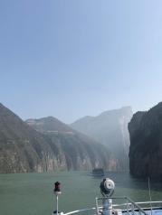 坐着游船,一路观赏瞿塘峡,很好的诠释了两岸青山相对出是什么样的景象。