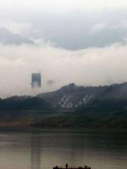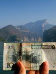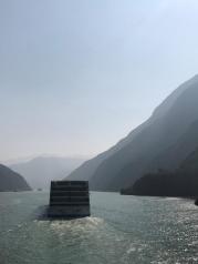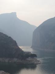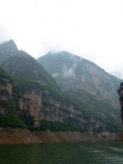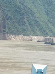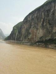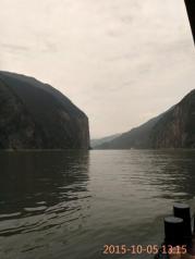 我们的游船慢慢逼近了瞿塘峡,我是看着手机上的导航知道接近瞿塘峡了。瞿塘峡是三峡中最上游的一段,也是最短的,只有8公里长,但它有号称“天下雄”的夔门,是十元人民币的背景,自然是十分壮观的。听说三峡截流以后,水位上涨很多,很多古迹都被淹在水下了,夔门的景观因为水位上涨,已经远不如以前威武雄壮了,非常遗憾。