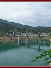 《瞿塘峡风雨廊桥》三峽水库浪打浪,白帝古城在岛上,风雨廊桥百丈长,迎接白帝跨瞿塘。雕龙刻凤书画镌,塑立孔明李白像。廊亭凉亭配盆景,楼阁观景瞰长江 。
