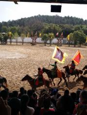 之前去过南海影视城一次,这一次带父母去的,整体感觉不错,还看了水战场和马战场,演员表演很优秀,很到位!值得去走走转转,对了 演出是每天两场,要合理安排时间才能看到哦尤其很多可以休息的石头椅子!还有成人秋千!在去香港澳门街的中途还遇到了街头表演《遇上影视人物》,很搞笑!景区吃的不多,多以小吃为主!