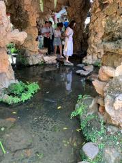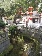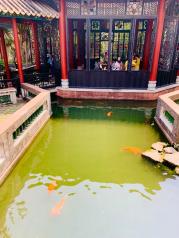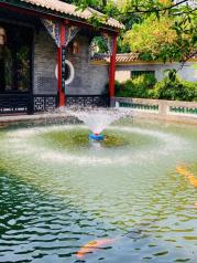 南海影视城的每个建筑都与池塘相连,形成处处是景的格局。池塘里养满了红鲤鱼和乌龟,很有趣味。不走寻常路的,也可绕着假山,池塘上石子路走上一走。园内也有展示介绍,就是假日很难找到解说员,只可慢慢欣赏墙上的木雕,园内的石雕