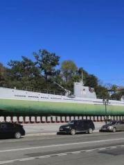 潜艇博物馆是一艘草绿色船底、青灰色船身的潜水艇,潜望塔侧面印着C-56字样,是俄罗斯太平洋舰队C-56号。艇的前舱像个狭长的会议室,墙上挂满潜艇官兵的照片、荣誉勋章、潜水服,正面放着两位潜艇艇长的青铜头像。 门票100卢布,儿童130厘米以下免费。