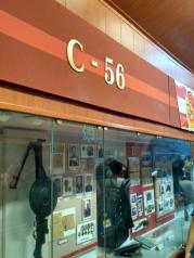 二战期间战功显赫的C-56号潜水艇,这艘潜水艇的各个部件先在列宁格勒制造,然后装上火车,经过上万公里的长途跋涉,运到海参崴组装完成后,编入太平洋舰队。卫国战争爆发后,C-56和其他三艘潜艇一起,被调往欧洲战场。于是它从海参崴出发后,横越太平洋,穿过巴拿马运河,进入大西洋,行程近30000公里,最后抵达北欧海域,在那里与德国海军展开战斗。到战争结束时,带着击沉德国军舰十余艘,重创4艘的辉煌战绩而自己丝毫无损,功不可没。C-56重新回到海参崴,完成了它的“环球航行”。博物馆建在了潜水艇里。潜艇长77米,宽5米,潜水深度44米,有四个鱼雷发射器,同时携带八枚鱼雷。现在人们置身其中仿佛亲临硝烟弥漫的战