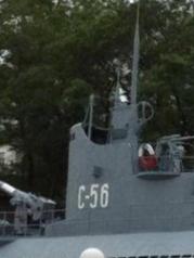 海参崴C-56潜艇博物馆是为纪念英勇牺牲的潜艇官兵,战后C-56潜艇被分割成数段,用火车、汽车、起重机运送至此,组合焊接复原,建立了这个别致的实体博物馆。 “C-56”号潜艇曾荣获红旗勋章和近卫军称号,矗立在符拉迪沃斯托克的“太平洋舰队的战斗荣誉纪念碑”广场上。旁边是黑色大理石砌成的纪念碑,碑文记载着从1941年至1945年,苏联红军海军在卫国战争保卫重要港口战斗中牺牲将士的事迹和得到中国、朝鲜帮助的史实。碑前燃烧着“长明火”。二战中,这艘C-56潜水艇的官兵英勇善战,共击沉敌舰10艘,重创4艘。