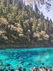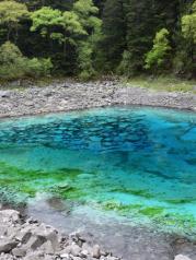 到了五彩池这里,只能不停感叹自然的鬼斧神工,相机不停的咔咔咔 五彩池,绚烂多彩,清澈的湖水下各种植被以及湖底钙化的树木和碧蓝的湖水共同打造出这一美景,不愧是九寨之眼,名不虚传。