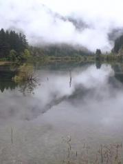 镜海是九寨沟著名景点之一,风平浪静时镜海能将地上和空中的景物毫不失真地映像到水面,当晨曦初露,朝霞染红东方天际之时,海水一平如镜,蓝天、白云、雪山悉数被映放在海面,呈现出鱼在云中游,鸟在水中飞的奇观。