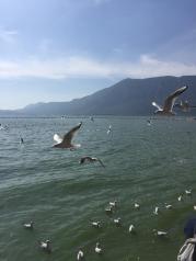 冬季的滇池非常漂亮,周围的树木也是绿草成荫。海鸥成片。很多游人在这里喂海鸥,重点是这里免费啊,但是这里有一个特色,大家都想模仿海鸥的声音来调戏海鸥,整个滇池湖畔一片鬼哭狼嚎。